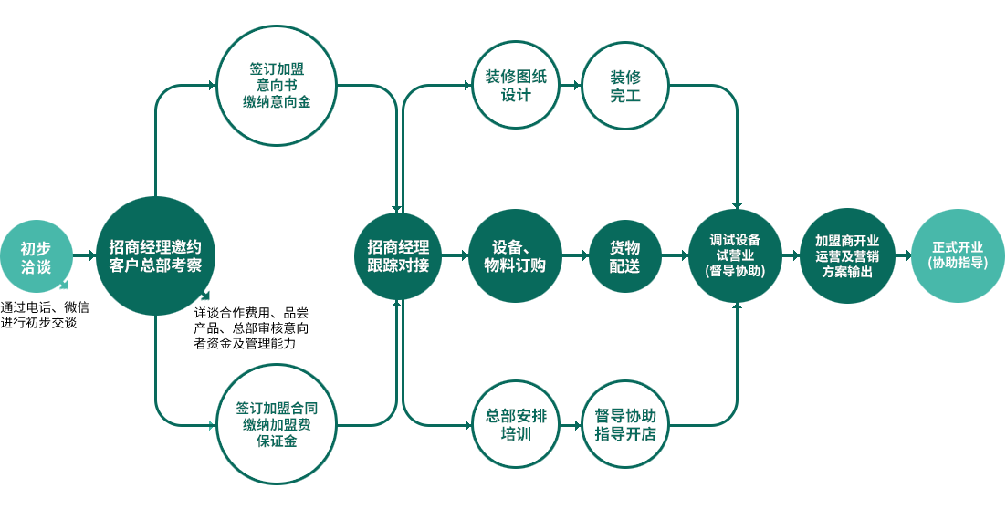 公司總部下設店鋪督導,一年365天,天天巡回在各地代理區(qū)域,協(xié)助各地投資者進行渠道擴充、店鋪管理,提高經營水平,提升業(yè)績